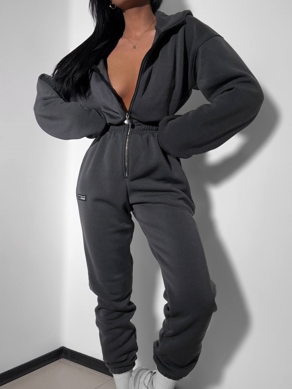 Удобный тёплый комбинезон по сезону. С капюшоном и кармашками, на змейке.