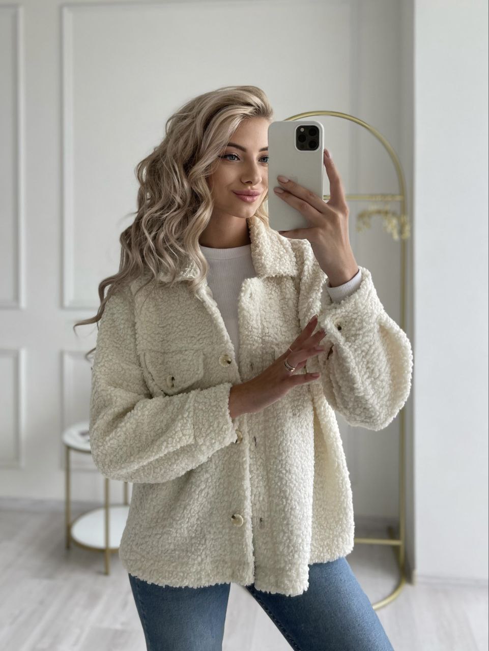 Укороченная куртка-рубашка из мягкой овчины Тедди.