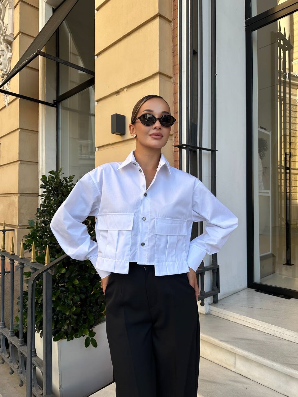 Укороченная рубашка из плотного коттона с карманами на груди белый