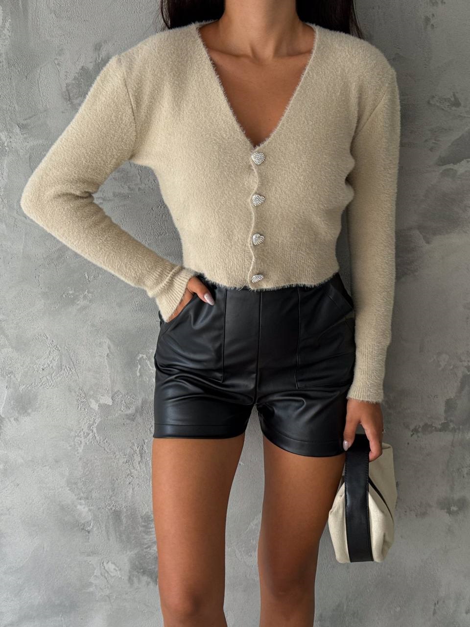 Укороченный мягкий кардиган с V-образным вырезом бежевый