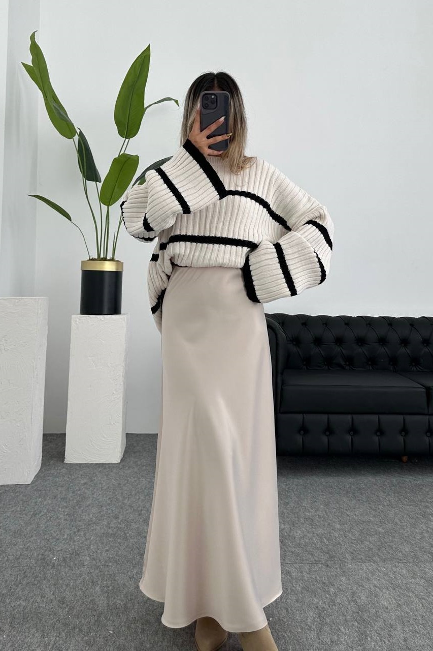Головна » Магазин » ОДЕЖДА » ЮБКИ ШОРТЫ » Универсальная шелковая юбка на резинке беж