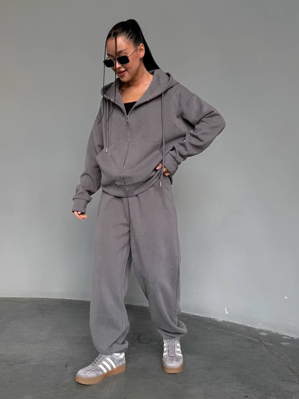 Универсальный повседневный костюм: Объемное худи + джоггеры графит