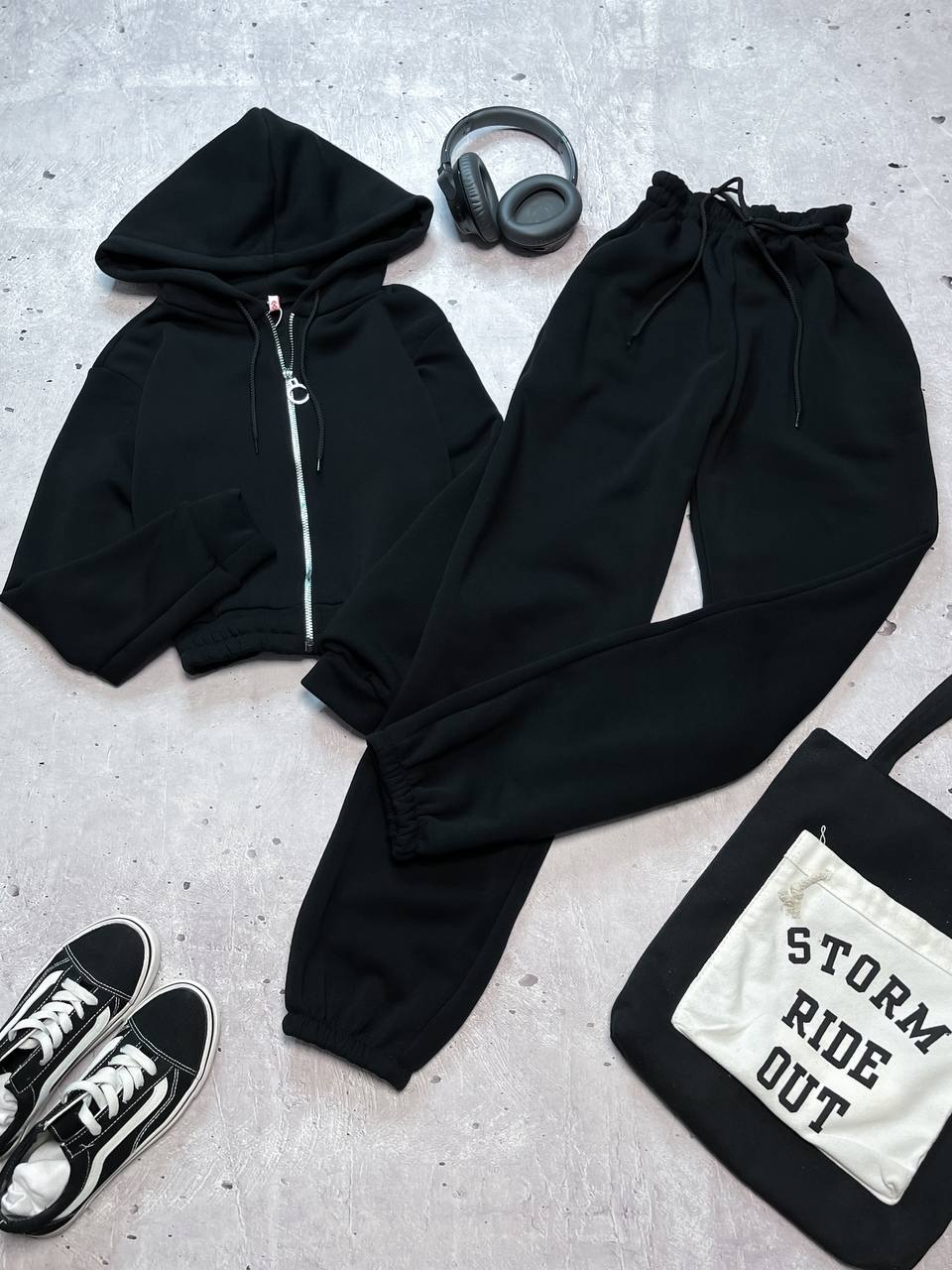 Утепленный костюм оверсайз (зеп кофта и джогеры) черный