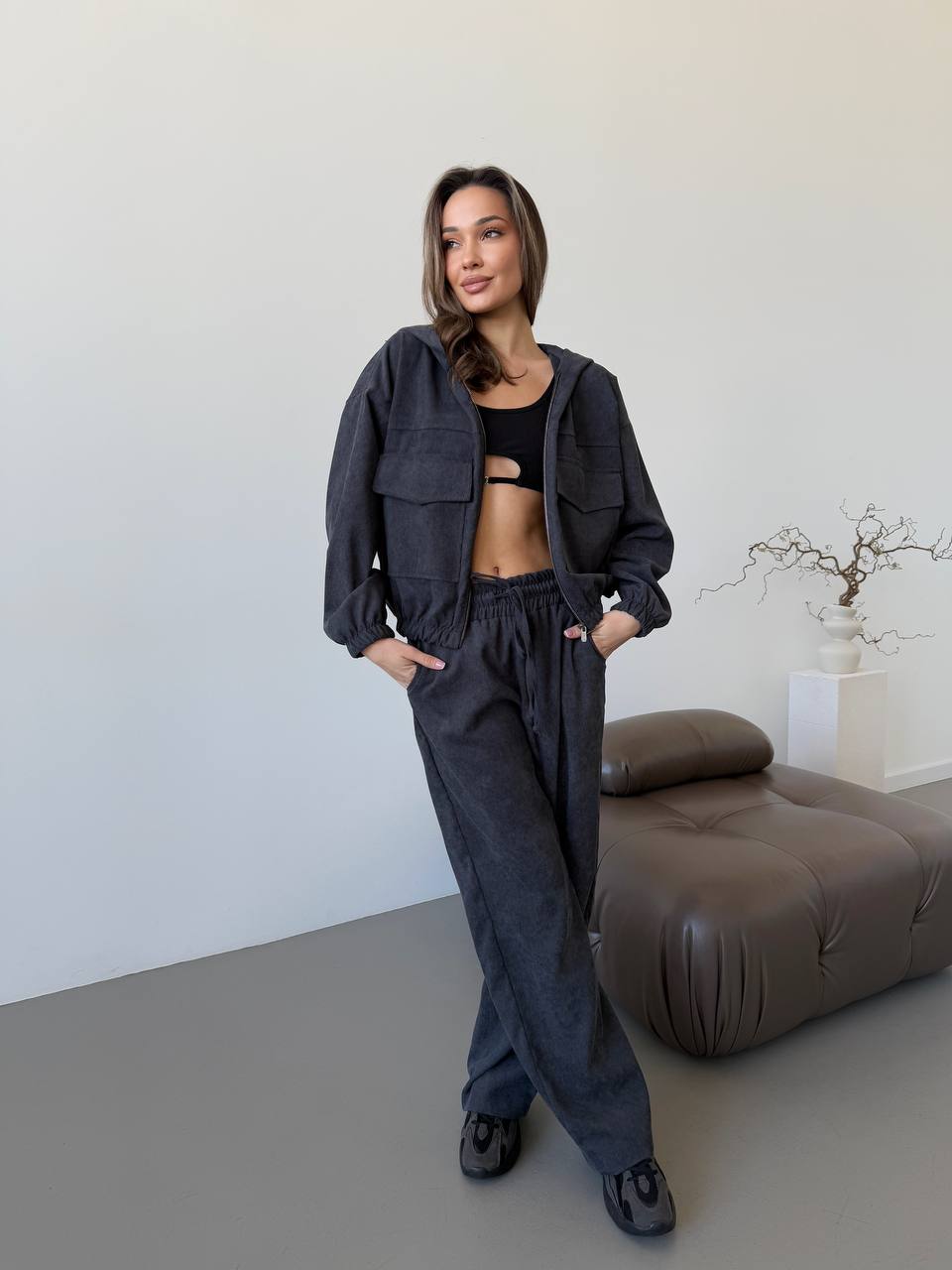 Головна » Магазин » ОДЕЖДА » ЖЕНСКИЕ КОСТЮМЫ » Вельветовый костюм кофта с накладными карманами+брюки графит