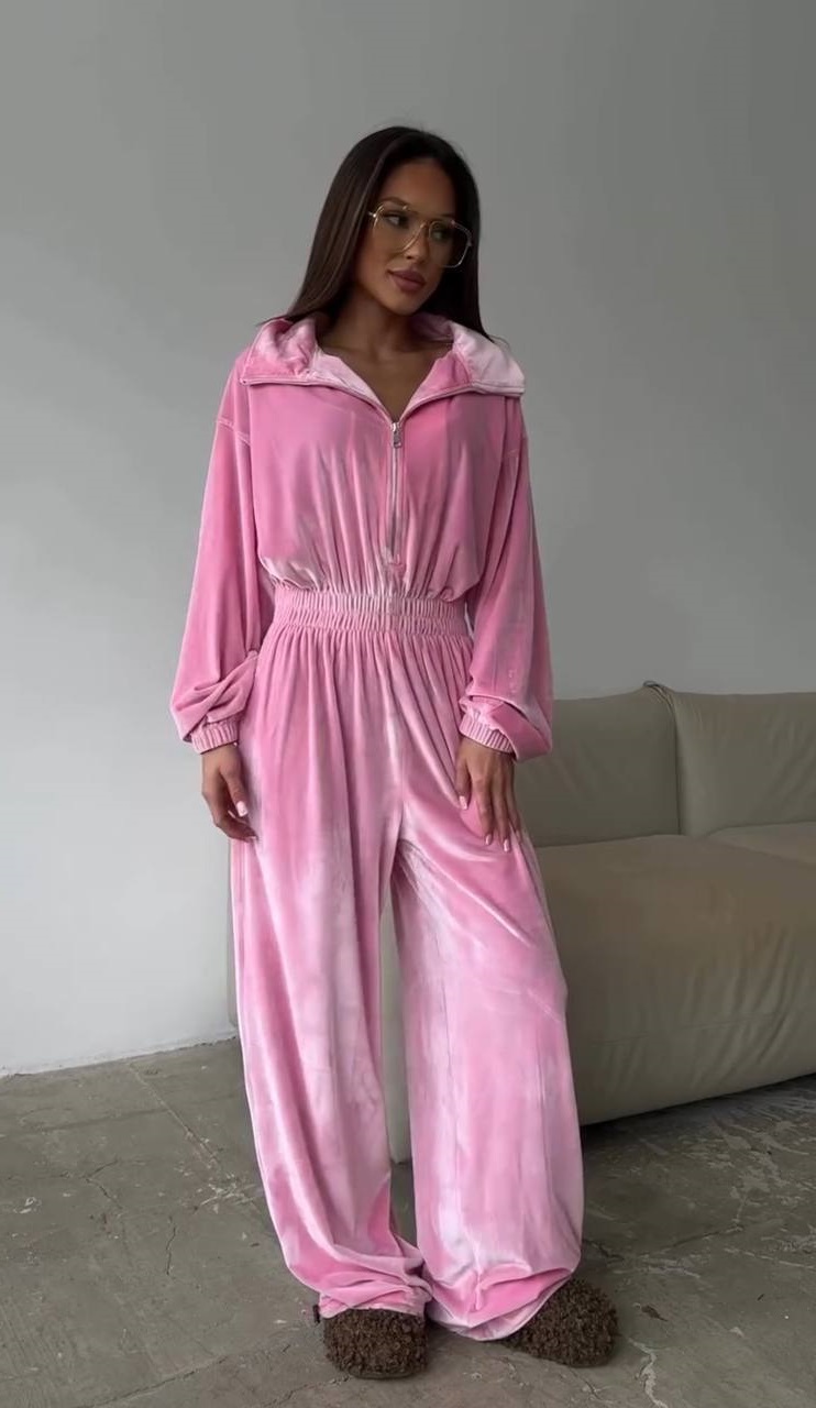 Головна » Магазин » ОДЕЖДА » КОМБИНЕЗОНЫ » Велюровый комбинезон (кофта на молнии+свободные брюки) барби