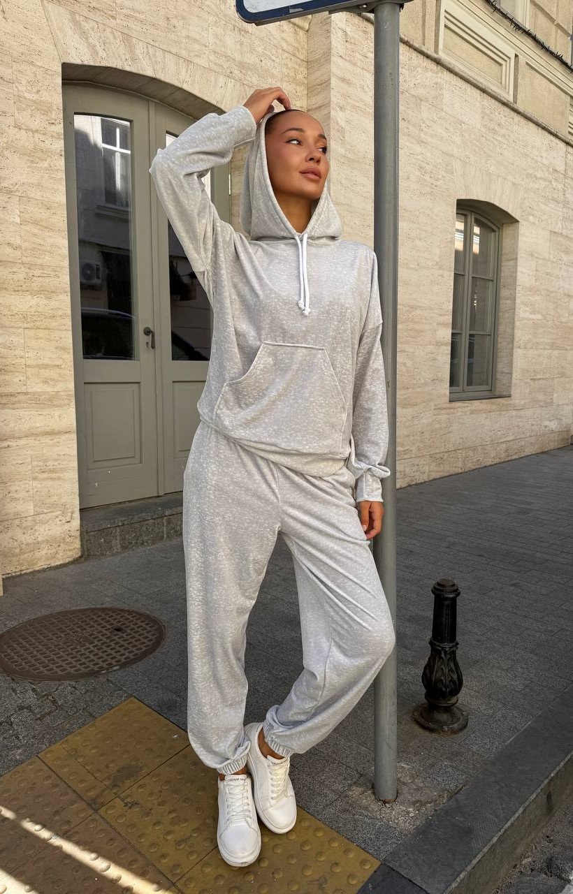 Головна » Магазин » ОДЕЖДА » ЖЕНСКИЕ СПОРТИВНЫЕ КОСТЮМЫ » Велюровый костюм (кофта с капюшоном+карманом+брюки манжета на резинке) меланж