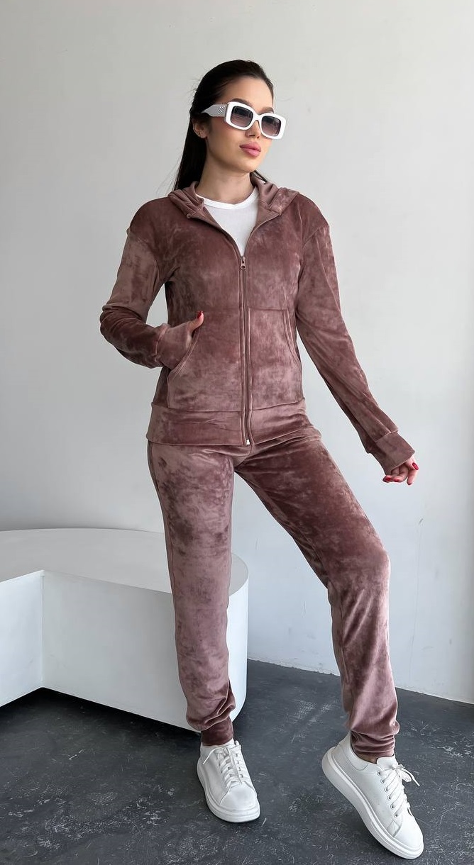 Кофта на молнии, брюки на высокой посадке, с карманами, внизу манжет, удобный и комфортный