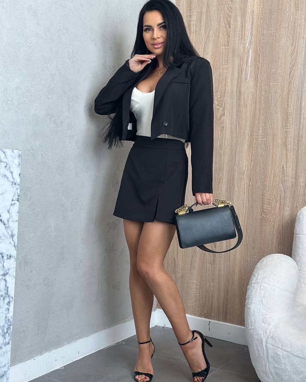 Головна » Магазин » ОДЕЖДА » ЖЕНСКИЕ КОСТЮМЫ » Весенний костюм 2-ка: пиджак+юбка-шорты черный