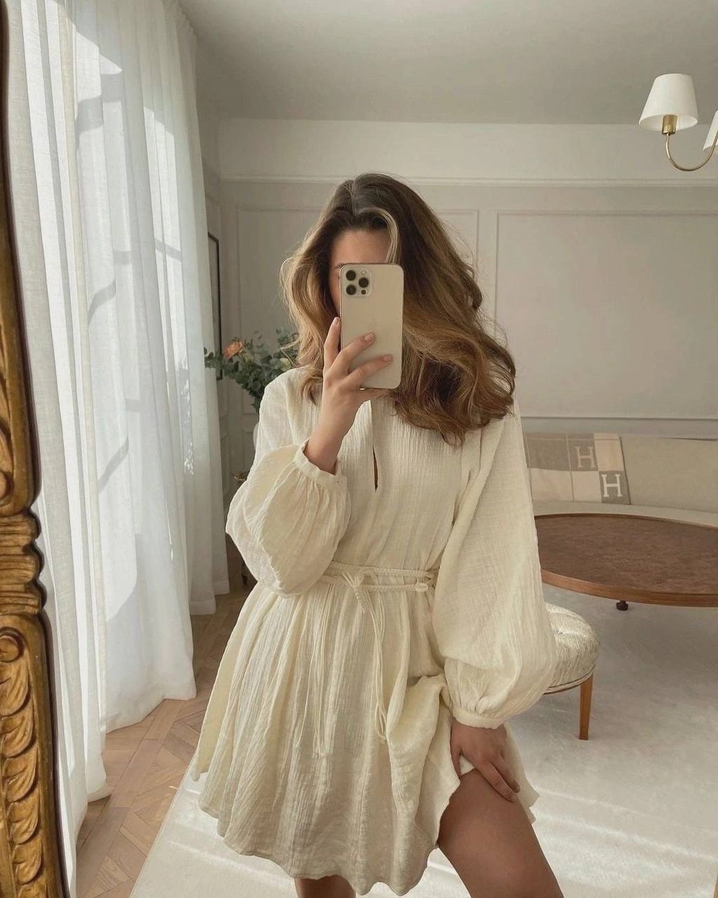Головна » Магазин » ОДЕЖДА » ПЛАТЬЯ ТУНИКИ САРАФАНЫ » Воздушное мини платье муслин без пояса молочный