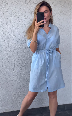 Платье затягивается на кулиску, сзади на талии резиночка, с карманами, рукав цельнокроенный.