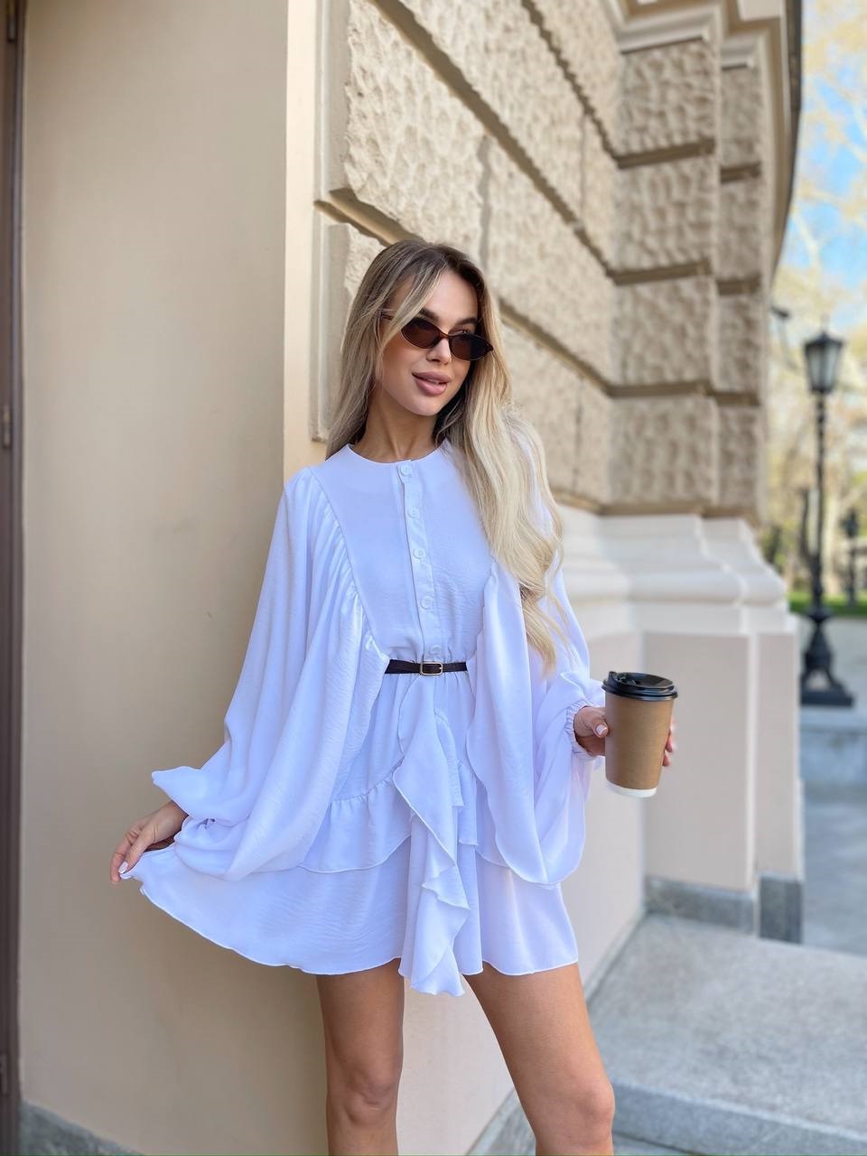 Воздушное Платье с пышными рукавами+оборочками на юбке белый