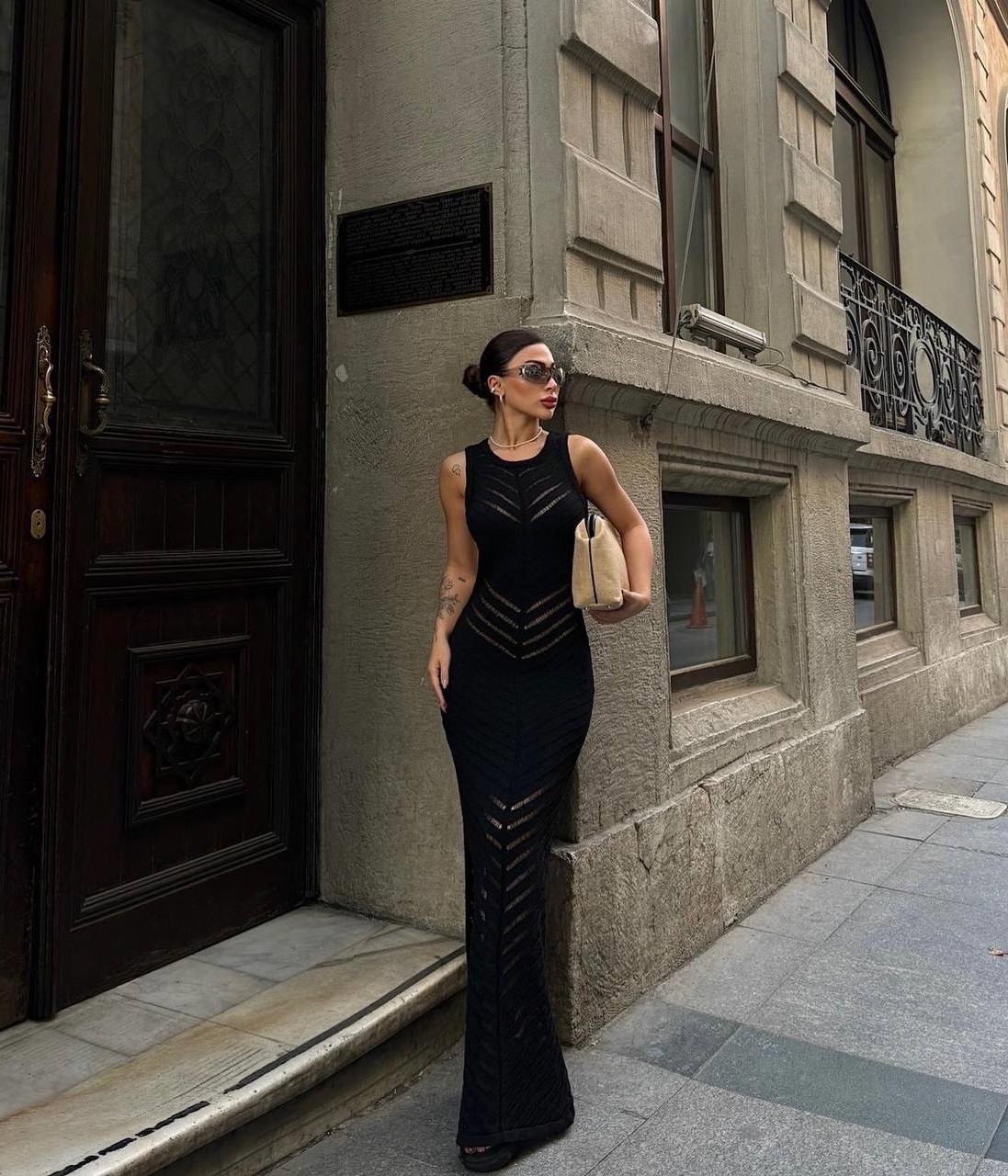 Головна » Магазин » ОДЕЖДА » ПЛАТЬЯ ТУНИКИ САРАФАНЫ » Вязаное платье длиной макси полуприталенного силуэта без рукавов черный