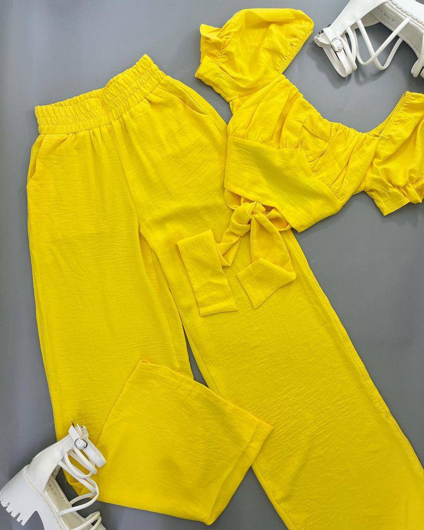 Будьте первым, кто оставил отзыв на “Яркий крутой костюм топ+свободные штаны желтый”