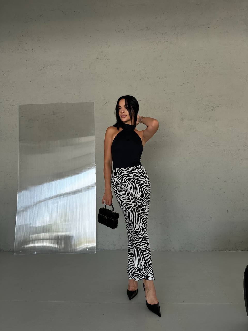 Юбка миди на резинке (софт) черная зебра