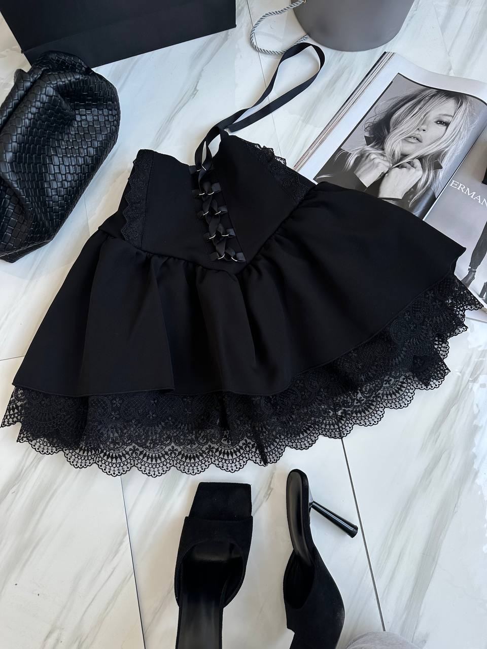 Юбочка с кружевом и шнуровкой в длине мини черный