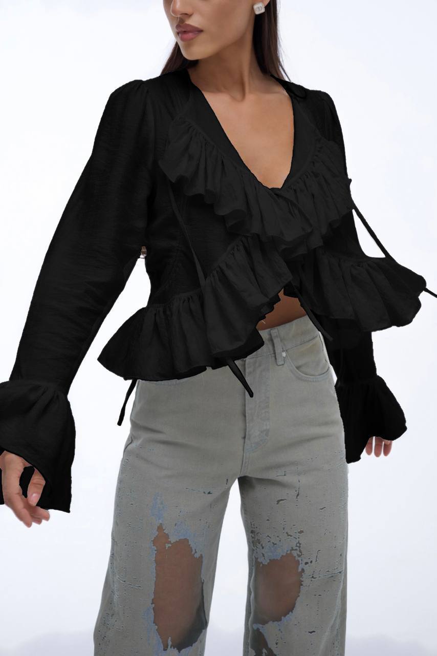 Головна » Магазин » ОДЕЖДА » БЛУЗЫ ТОП БОДИ КОРСЕТЫ » Женская Топ-рубашка на завязках черный