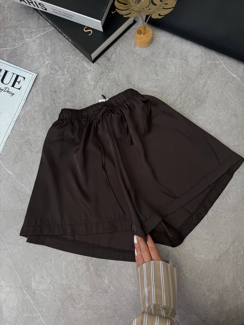 Женские шелковые шорты (Пояс на резинке) шоколад