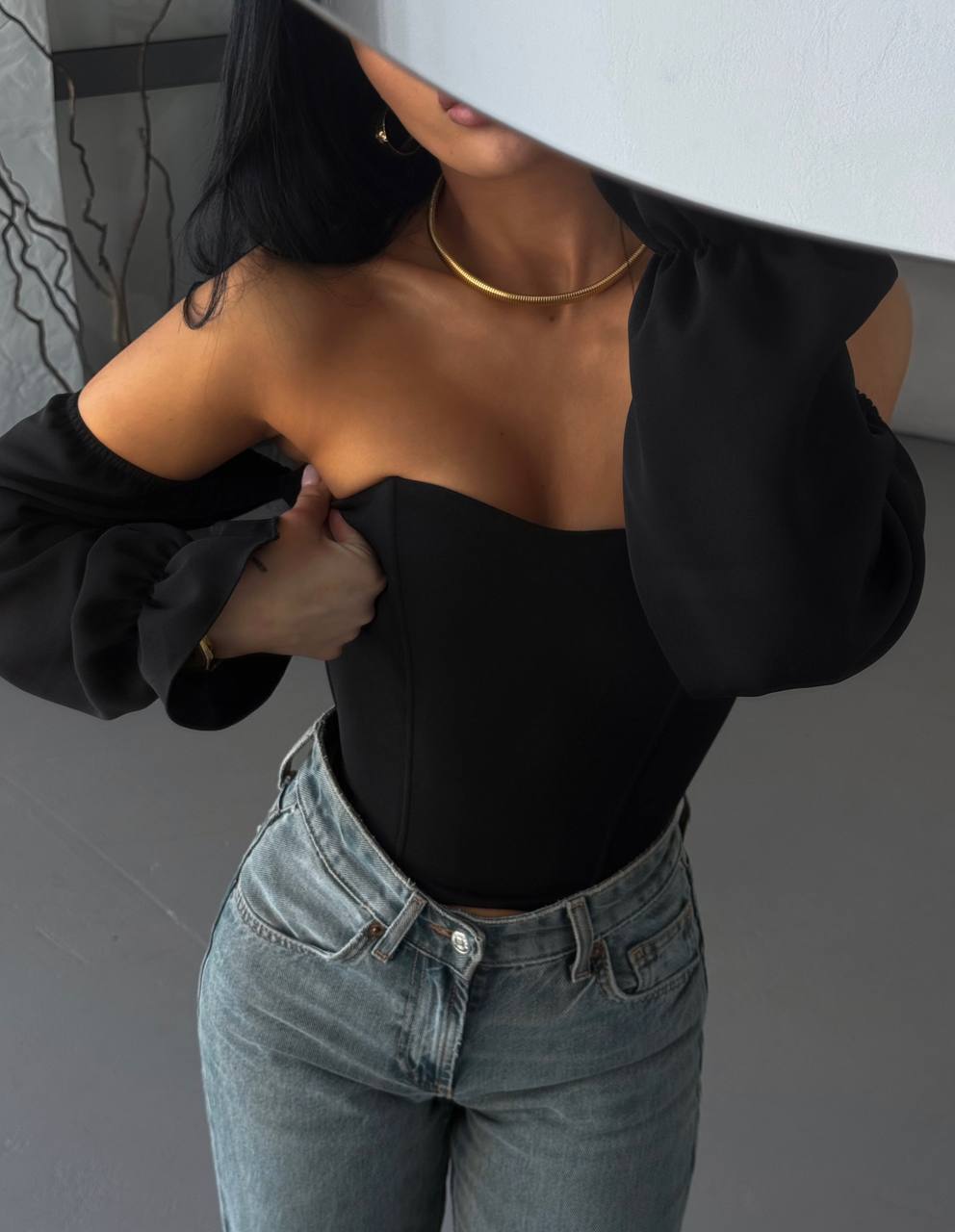 В нем хочется выходить в свет, флиртовать, смеяться и собирать восторженные взгляды. Ткань держит форму, рукава придают легкости, а шнуровка — деталь, придающая загадочности.