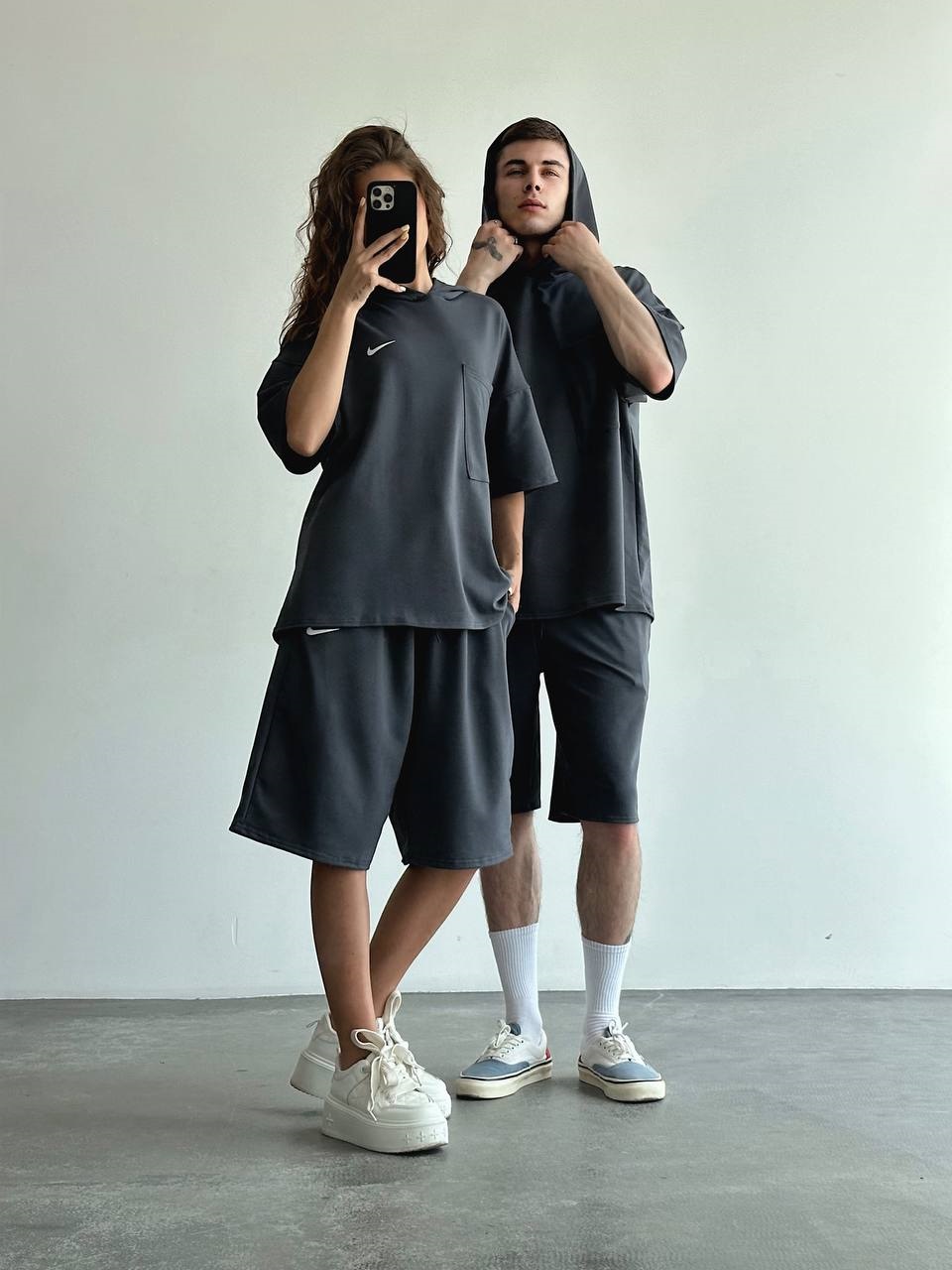 Женский костюм (футболка широкого кроя+шорты бермуды с высокой посадкой) двухнитка графит