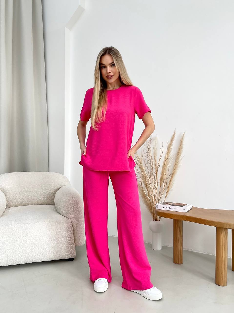Будьте первым, кто оставил отзыв на “Женский костюм: футболка+штаны (креп жатка) малина”