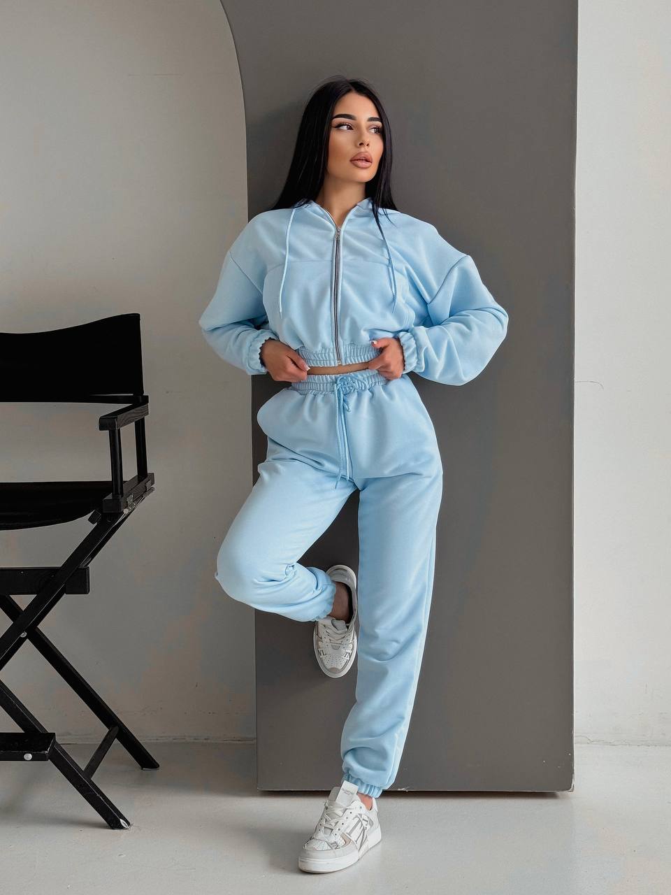 Женский костюм: кофта со спущенным рукавом на змейке+штаны с карманами голубой