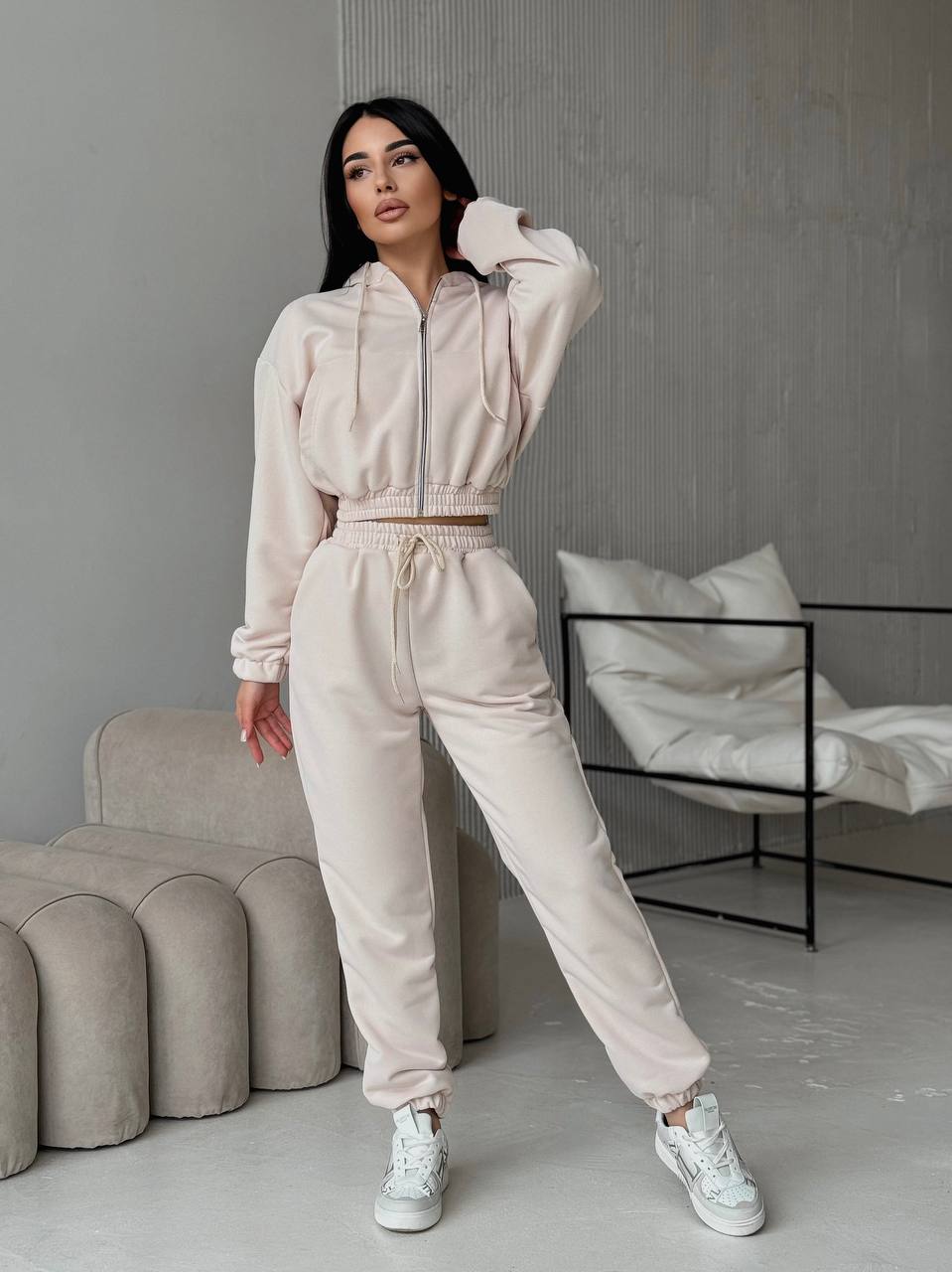 Женский костюм: кофта со спущенным рукавом на змейке+штаны с карманами беж