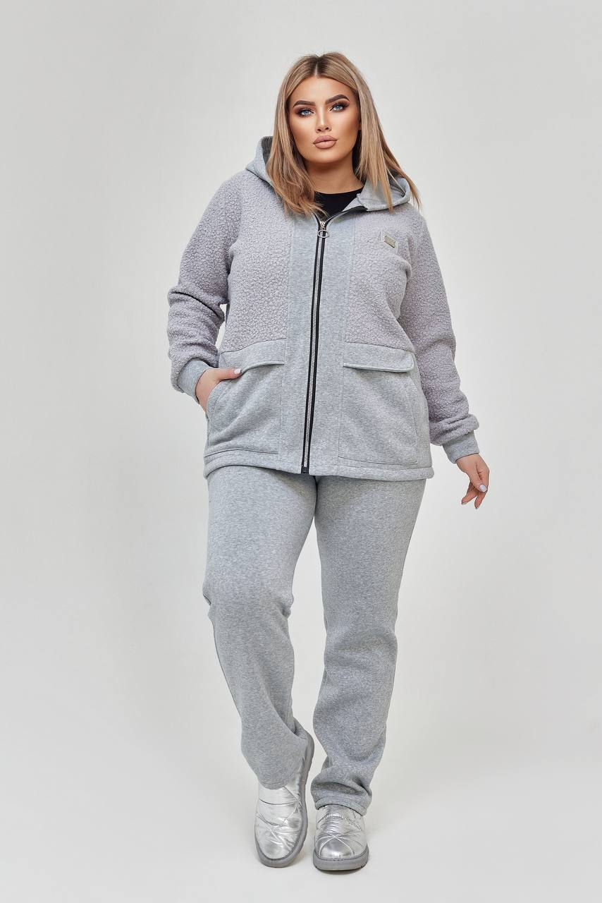 Женский костюм (кофта+штаны) трикотаж 3-хнить с начесом+Тедди серый