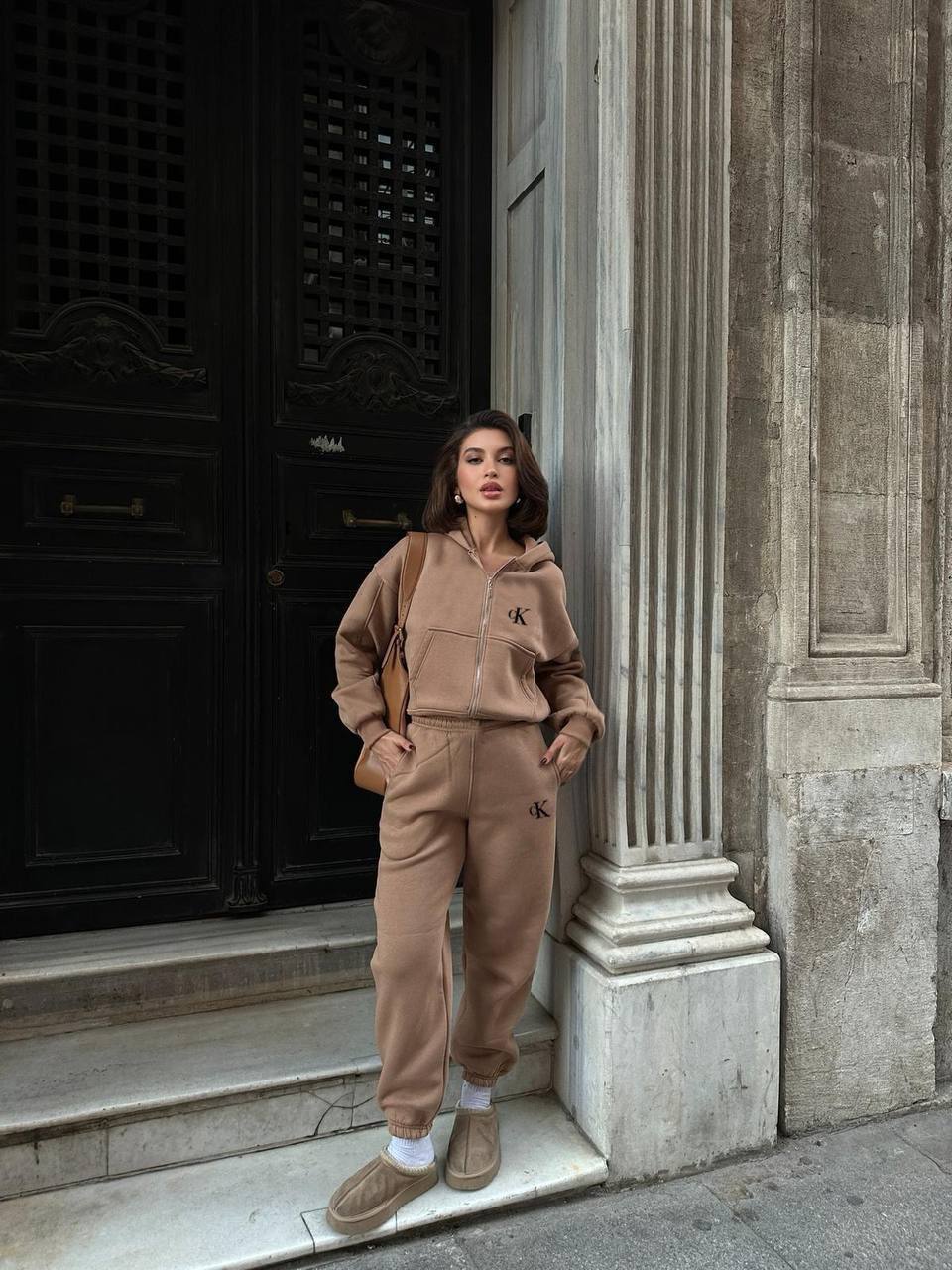 Головна » Магазин » ОДЕЖДА » ЖЕНСКИЕ СПОРТИВНЫЕ КОСТЮМЫ » Женский костюм спортивный на флисе ( кофта на молнии+штаны) мокко