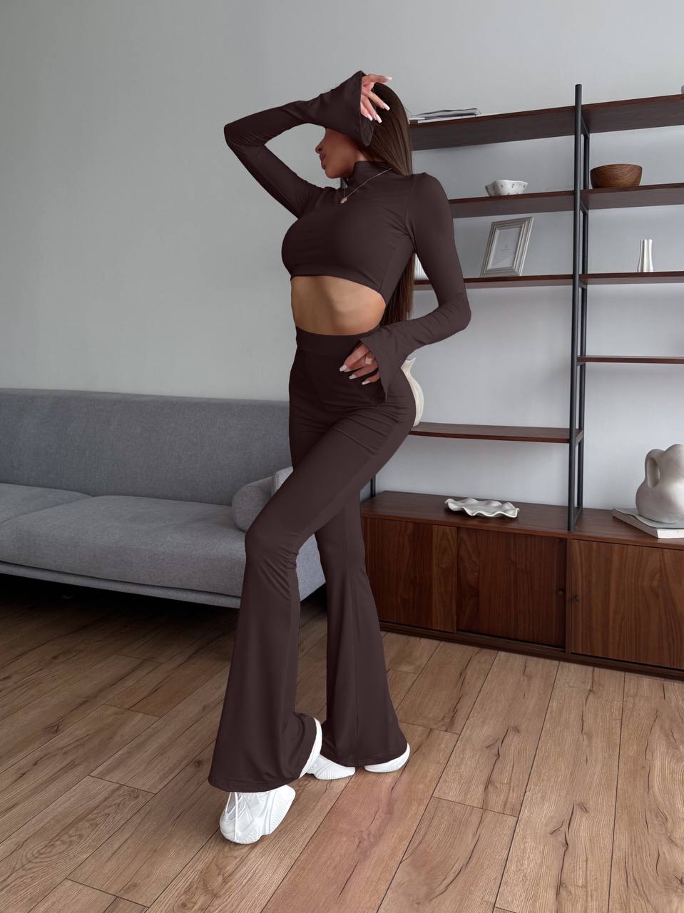 Женский костюм: топ с длинным рукавом и штаны-клеш (микродайвинг) шоколад