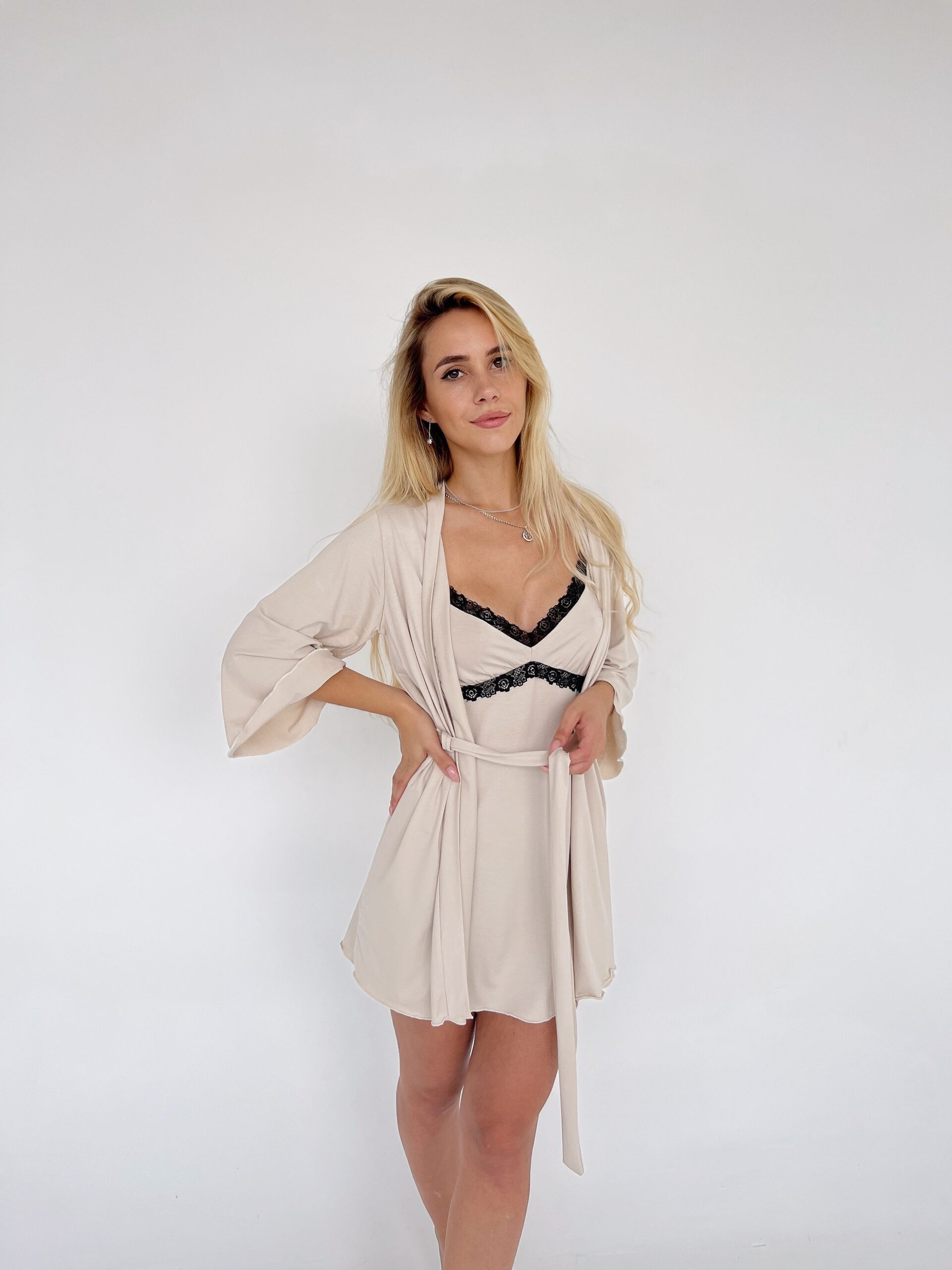 Будьте первым, кто оставил отзыв на “Женский трикотажный комплект пеньюар с халатом, молочный”