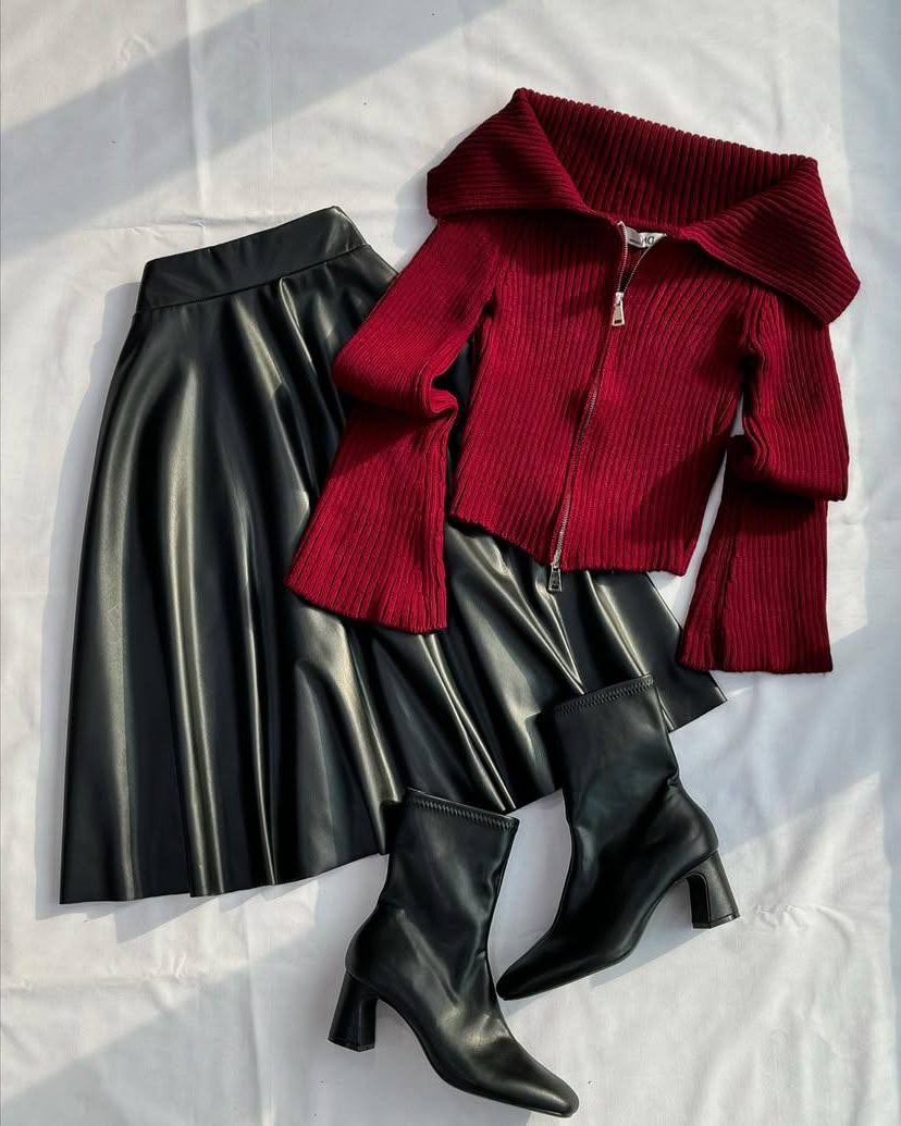 Головна » Магазин » ОДЕЖДА » ЮБКИ ШОРТЫ » Женственная кожаная расклешенная юбка черный