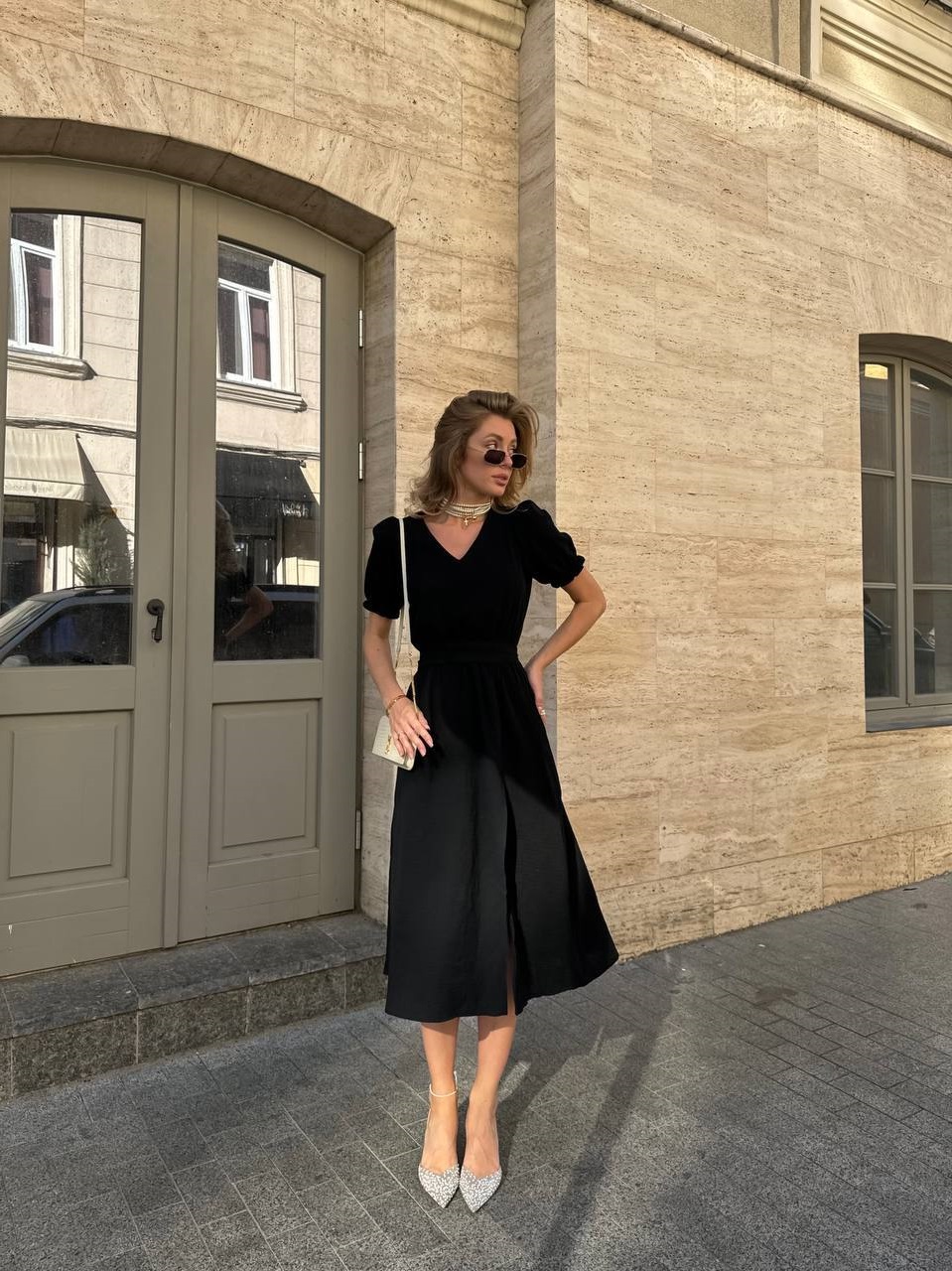 Женственное легкое платье из муслина с рукавом фонарик длиной миди черный