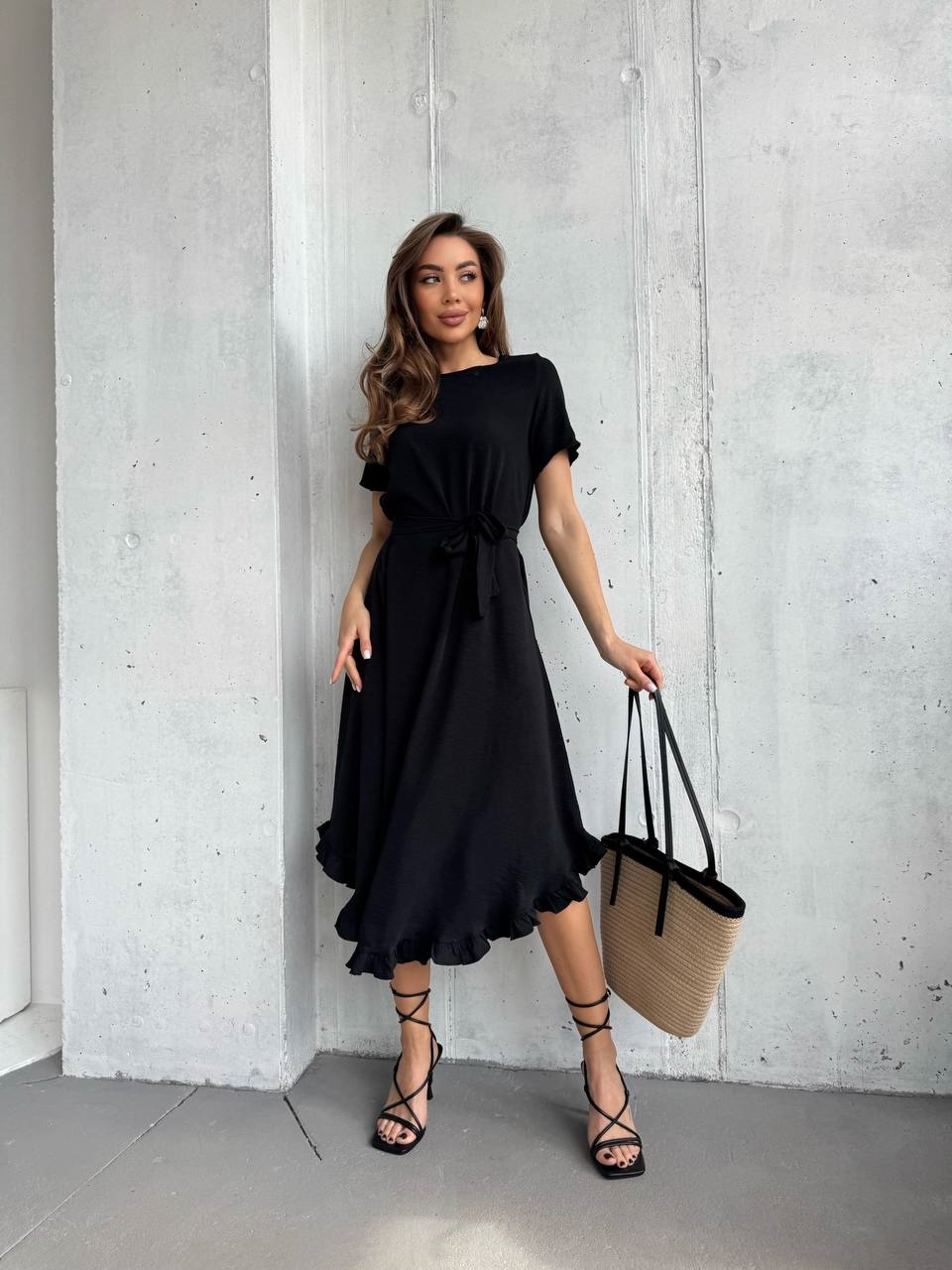 Низ украшен воланами, что добавляет легкости и динамики образа.