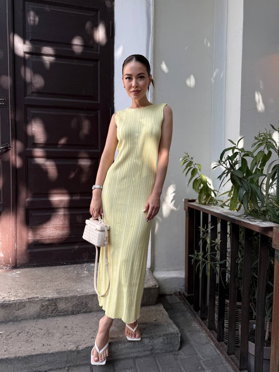 Женственное Платье по фигуре длиной макси с диагональными полосами лимон