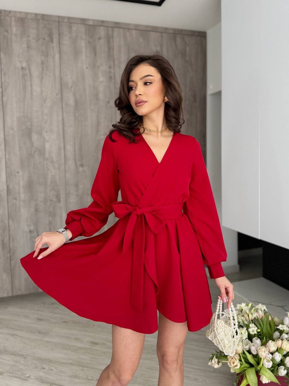 Головна » Магазин » ОДЕЖДА » ПЛАТЬЯ ТУНИКИ САРАФАНЫ » Женственное платье с расклешенной юбкой+полочка на запах с поясом креп костюмка бордо