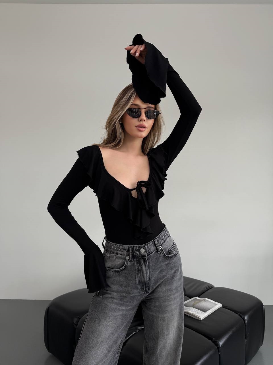 Будьте первым, кто оставил отзыв на “Женственный боди из вискозы с воланами черный”
