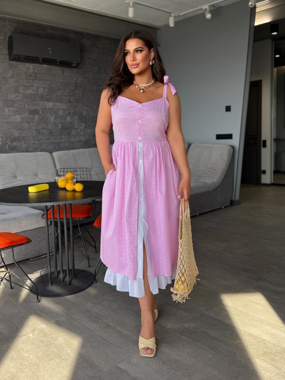 Головна » Магазин » ОДЕЖДА » ПЛАТЬЯ ТУНИКИ САРАФАНЫ » Женственный сарафан в клетку с акцентным нижним слоем коттон розовый