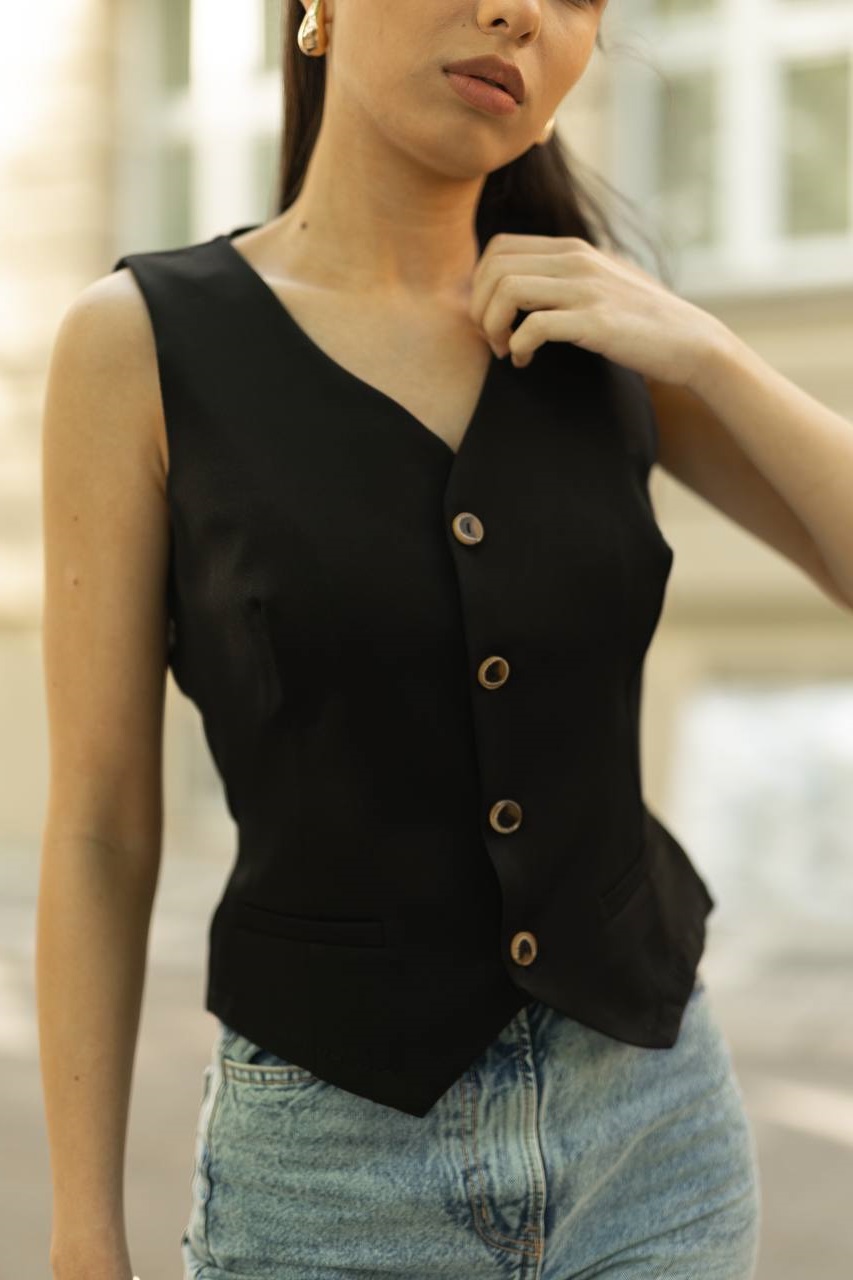 Будьте первым, кто оставил отзыв на “Жилет приталеного кроя на пуговицах костюмка черный”