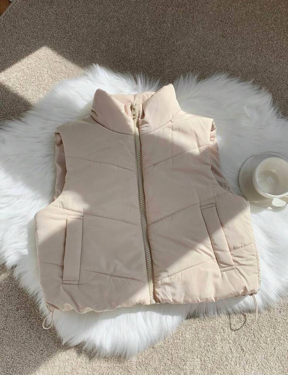 Жилетка укороченая с карманами на молнии+воротничок стойка молочный