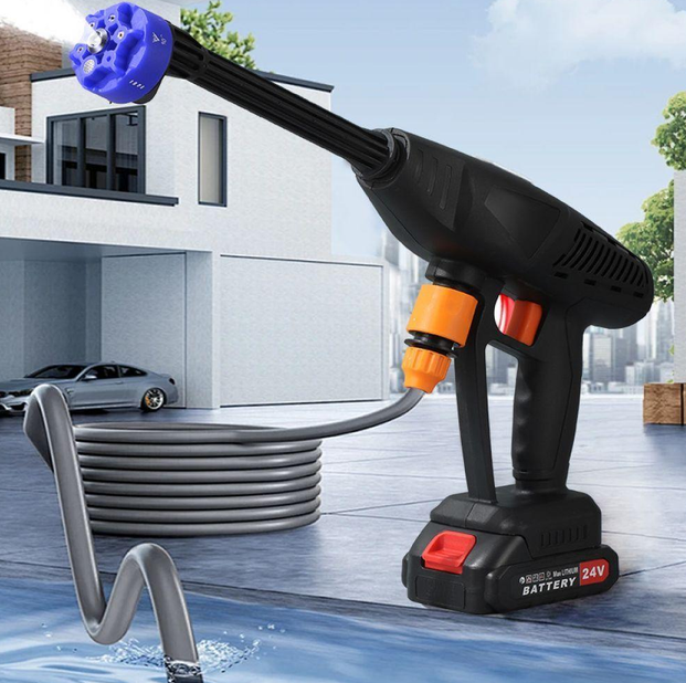 Беспроводная работа от аккумулятора позволяет использовать ее для мойки автомобиля (в гараже или на улице),