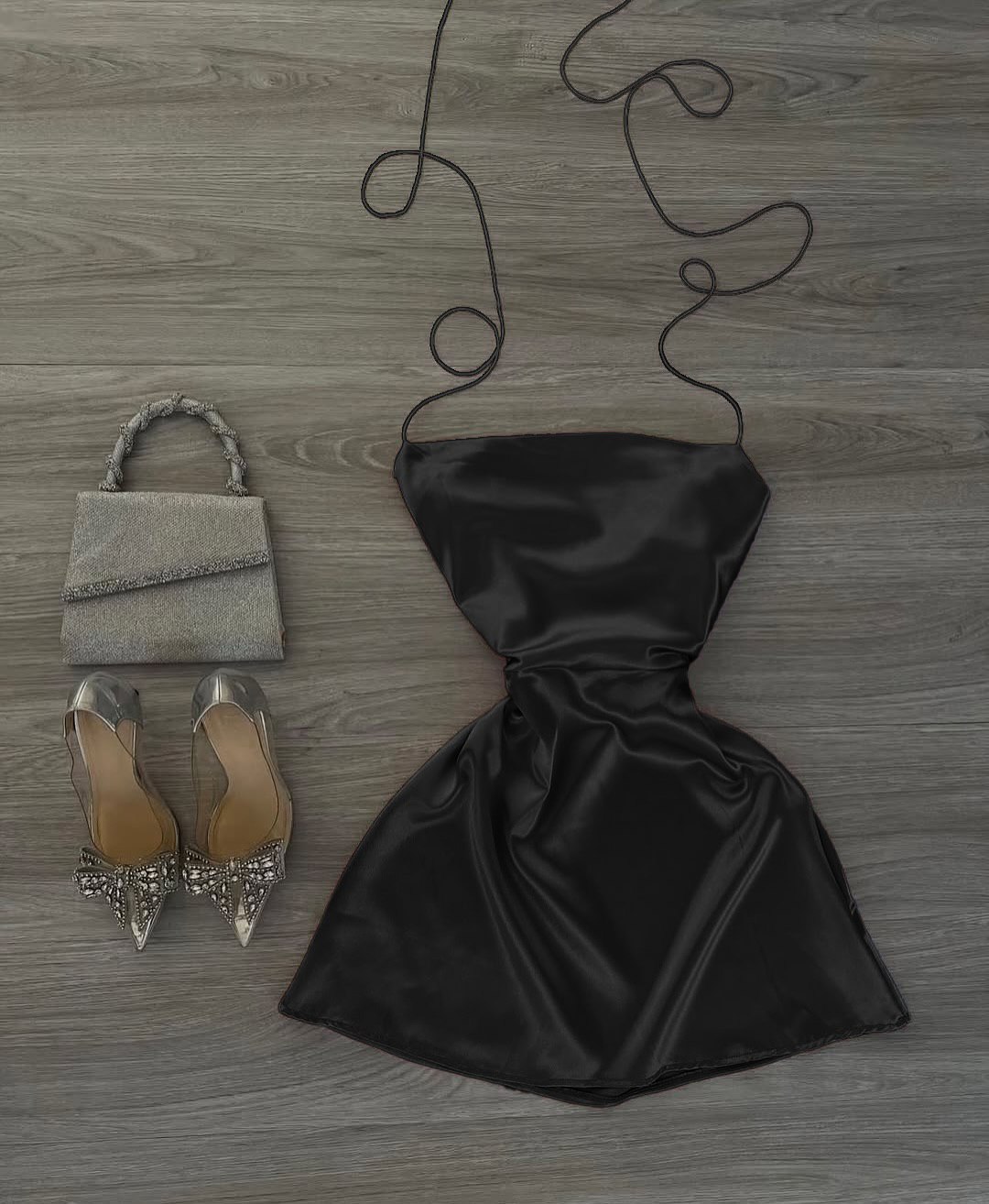 Будьте першим, хто залишив відгук “Атласное платье с шнуровкой на спине черный”“