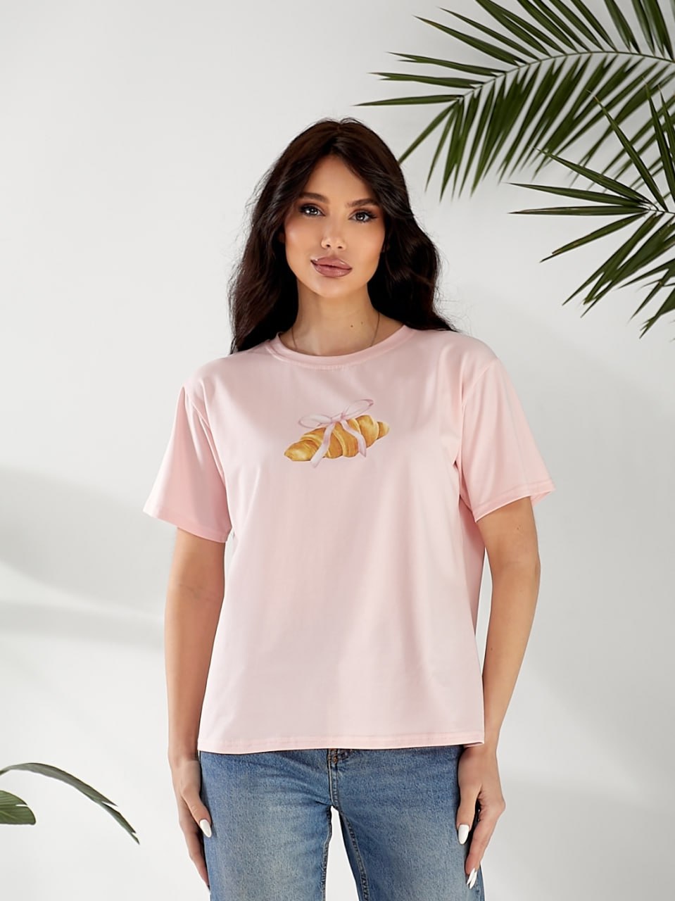 Базовая футболка с нежным круассановым принтом. Свободный крой, приятная на ощупь ткань, идеальная для повседневного образа.