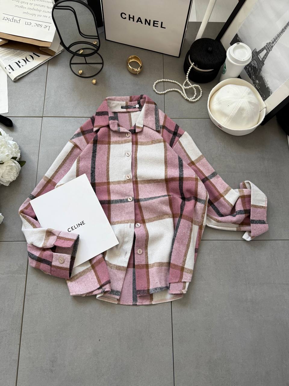 Головна » Магазин » Одяг » Куртки сорочки » Базовая рубашка в клетку на пуговицах (фланель байка) розовое молоко