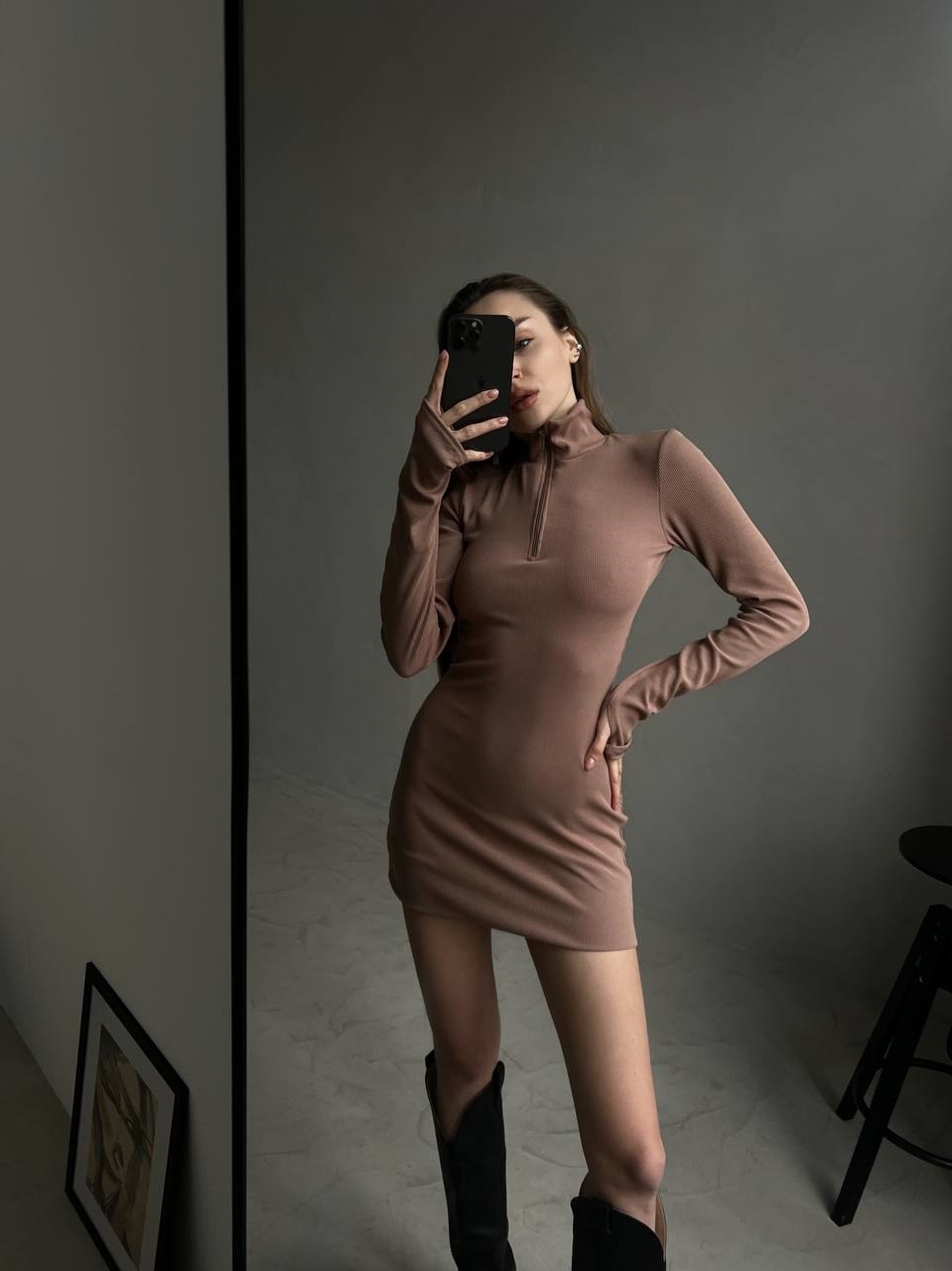 Базовое платье из плотного турецкого рубчика с молнией и разрезами для пальчиков