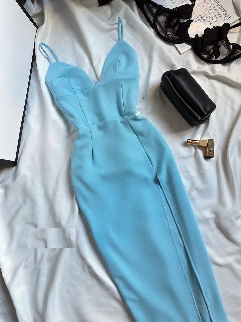 Головна » Магазин » Одяг » Сукня туніка сарафані » Базовое платье на бретелях прямого кроя с разрезом по ножке голубой