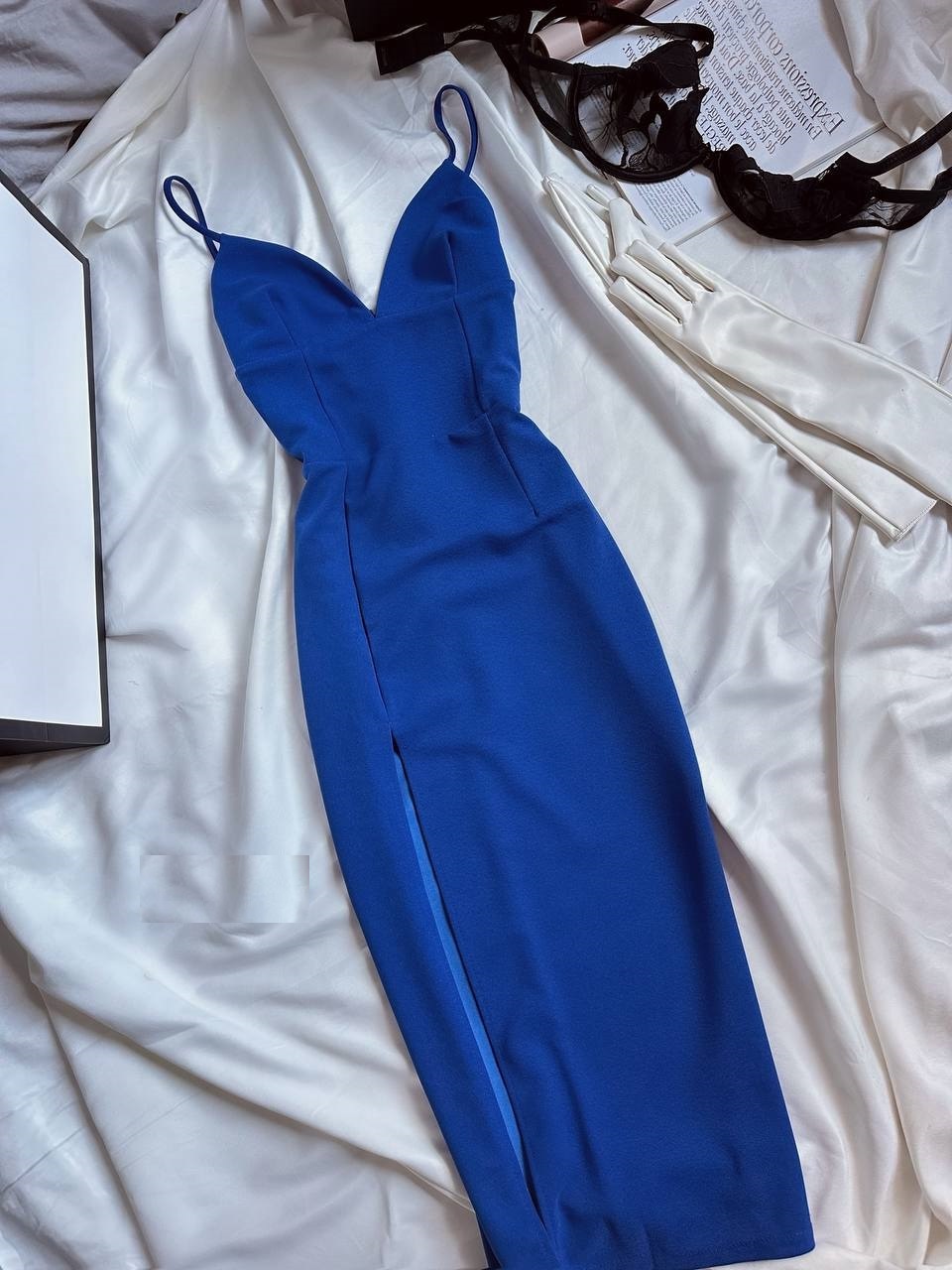 Головна » Магазин » Одяг » Сукня туніка сарафані » Базовое платье на бретелях прямого кроя с разрезом по ножке электрик