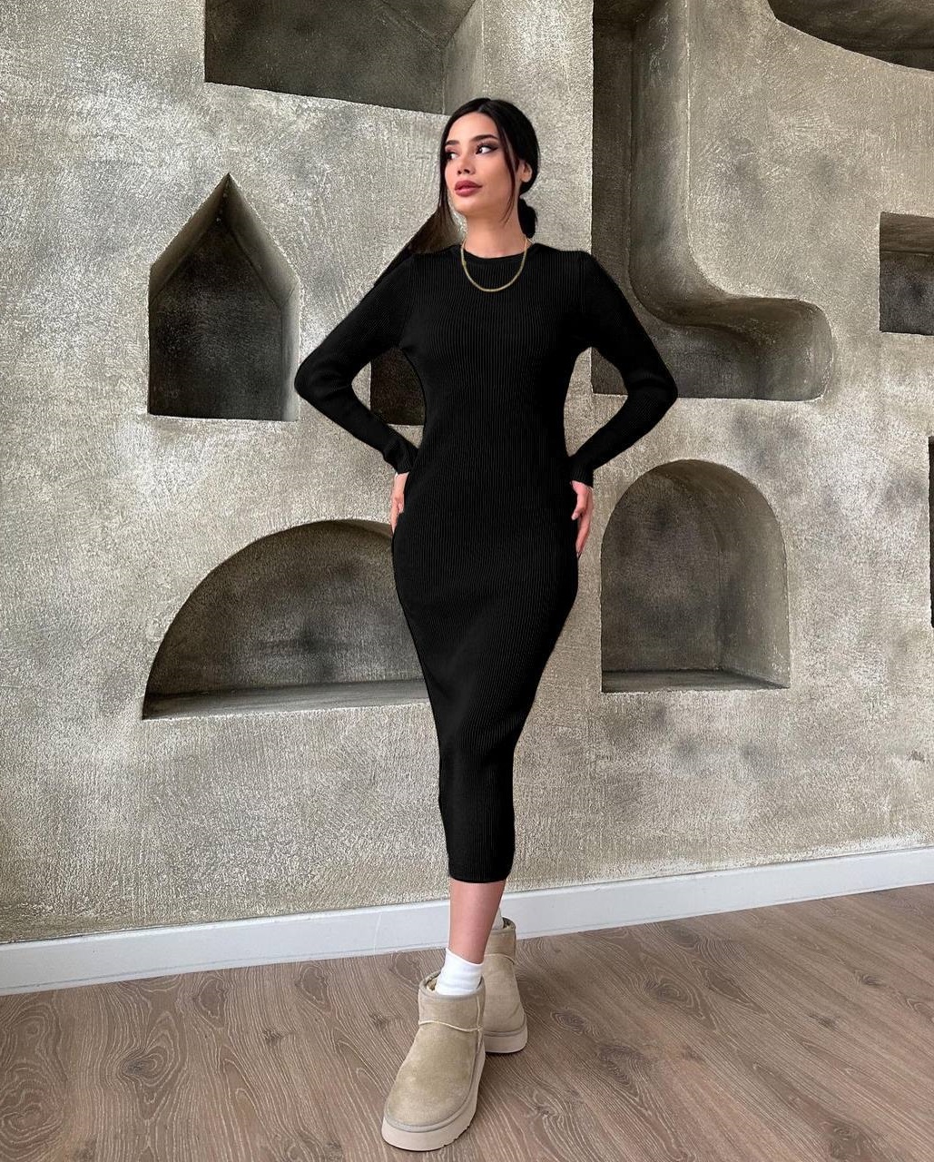 Базовое платье из теплого рубчика