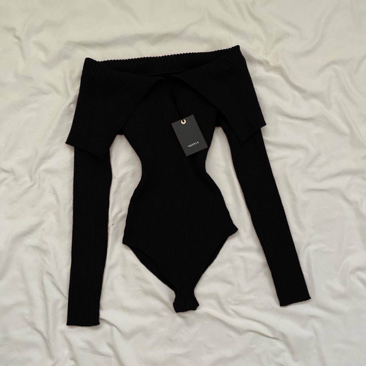 Базовый боди с длинным рукавом и открытыми плечами на кнопках снизу.