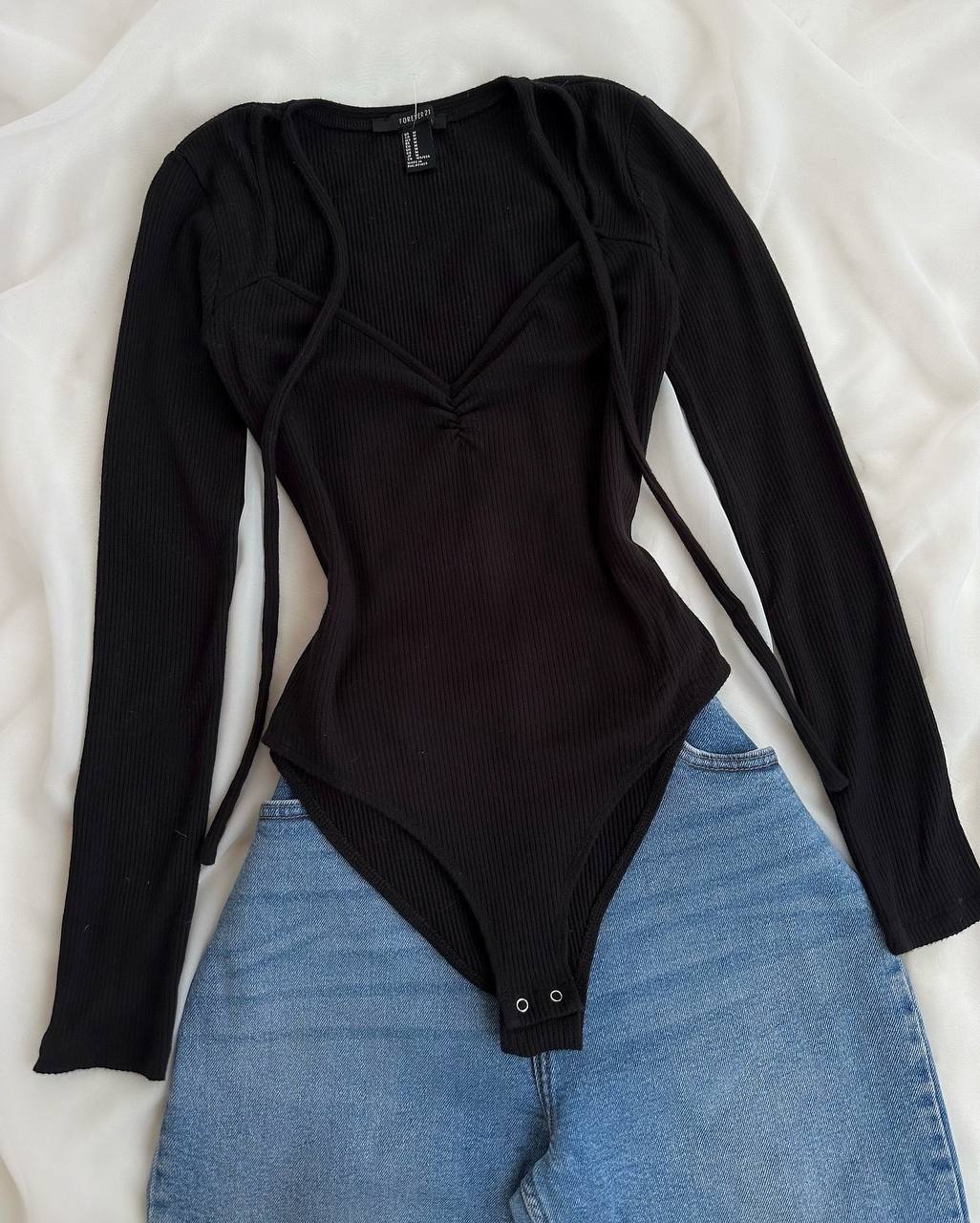 Базовый боди с длинным рукавом на кнопках снизу. Идеально совмещается с любым низом.