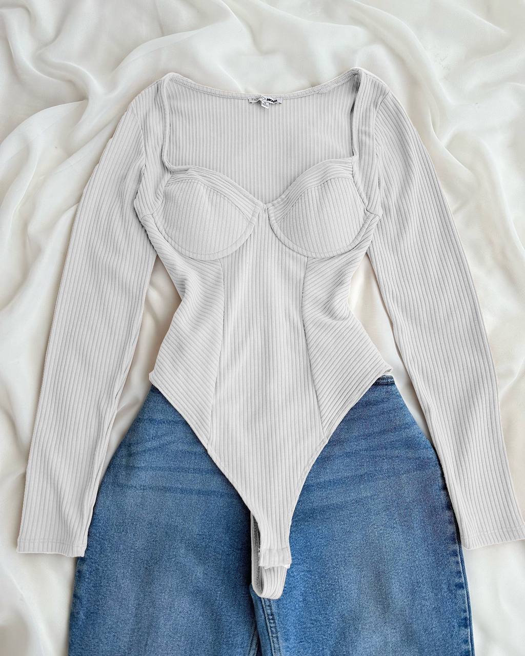 Базовый качественный боди с длинным рукавом с чашечками. Идеально совмещается с любым низом.